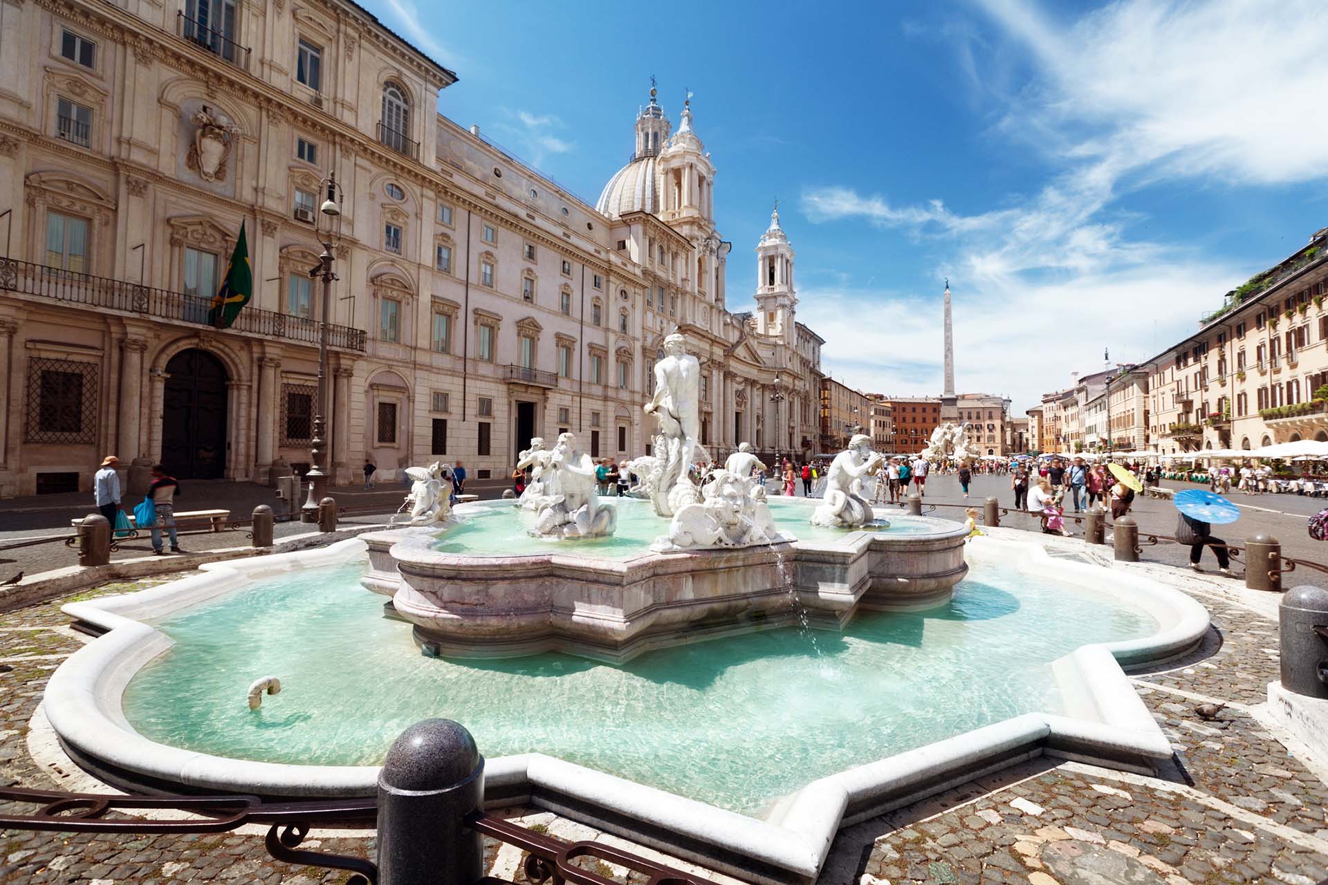 Piazza Navona. E’ una delle piazze più famose di Roma, conosciuta per la sua forma allungata e per le sue splendide fontane. Originariamente costruita duemila anni fa come stadio per le gare atletiche, oggi è un luogo vivace e affascinante, circondato da caffè, ristoranti e artisti di strada. Le tre fontane principali, tra cui la Fontana dei Quattro Fiumi del grande artista e architetto Bernini, sono veri capolavori barocchi. Non lasciatevi sfuggire un luogo dall’atmosfera speciale!